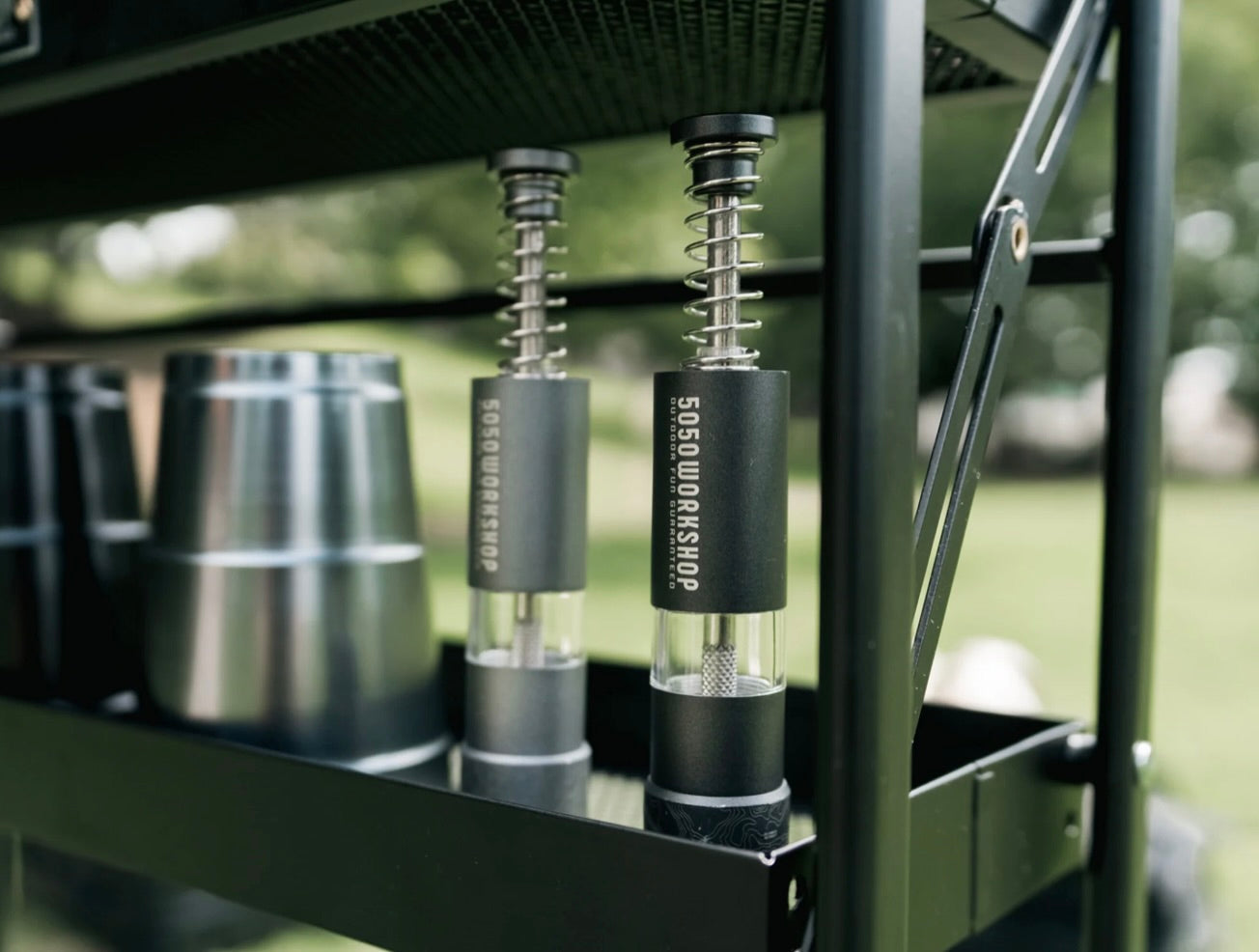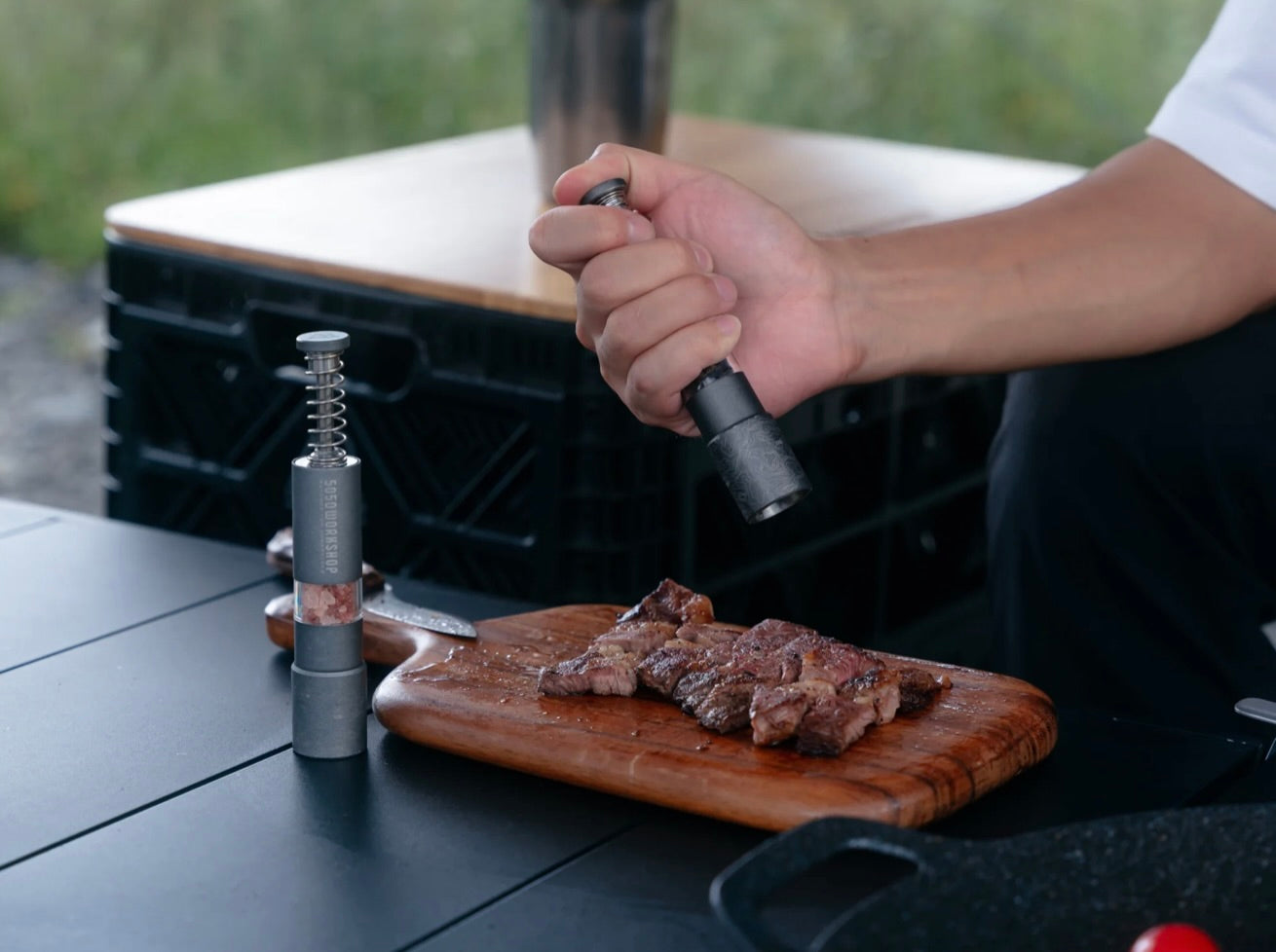 厳選された素材とシンプルな美しさが光るこのスパイスミルは、キッチンだけではなく、アウトドアシーンでもその存在感を放ちます。