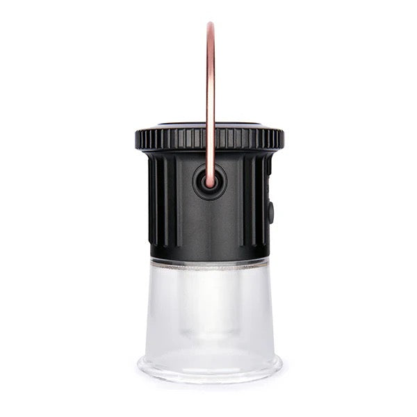 重量わずか176gという軽量コンパクト設計で、持ち運びのしやすさが魅力のライトです。キャンプ用としてはもちろん、日常使いの読書灯や非常時の備えとしても、幅広い場面で活躍します。機能性にも優れており、底部がねじ込み式構造になっているため、お手持ちのスタンドや三脚に簡単に取り付けてご使用いただけます。自由な場所に設置が可能なので、テーブルの上など特定の場所を照らすことも可能。さらに、上部にはシックな銅製リングと便利な磁気ベースを備えています。この銅製リングは180度以上回転するため、テントのポールにつるしたり、金属製の棚にピタッと固定したりと、設置場所を選ばず、光の向きを自由自在に調整可能です。耐久性の高い素材を使用しているため、アウトドアの厳しい環境でもしっかりと照らしてくれます。