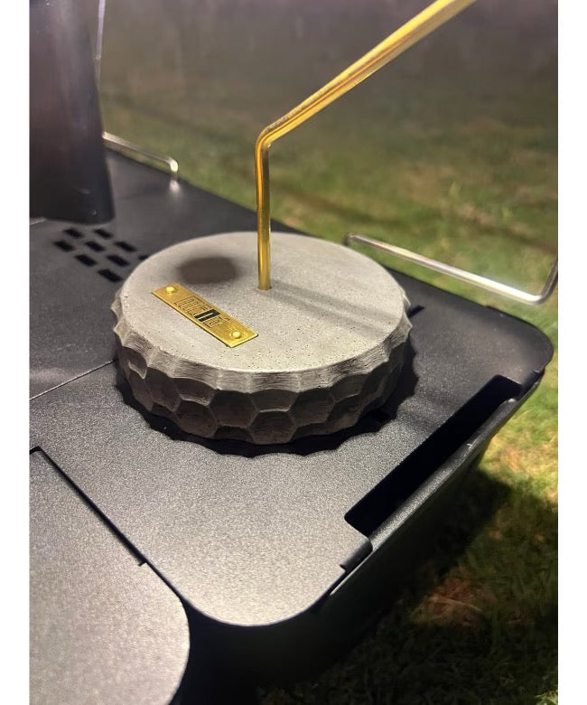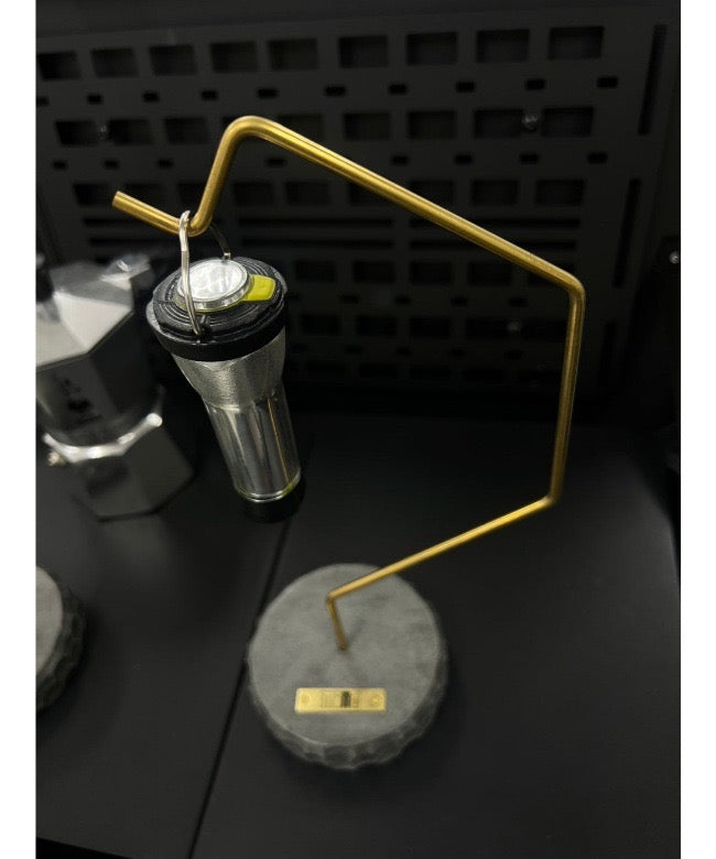 | SPEC | 素材:墨モルタル(土台)×真鍮(プレート、支柱) 高さ:28cm(土台高さ2.5cm) 直径:10cm 重量:385g |