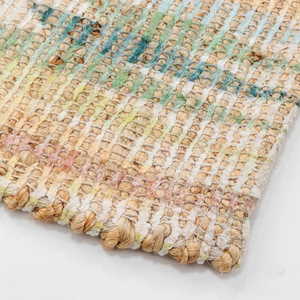 サイズは90cm×130cmとリビングのソファ前や、玄関、寝室などに敷くのにぴったり。環境に優しい天然素材の心地よい風合いとアート性の高いデザインが融合したこのラグは、足元からお部屋の雰囲気を豊かに彩ります■SPEC■