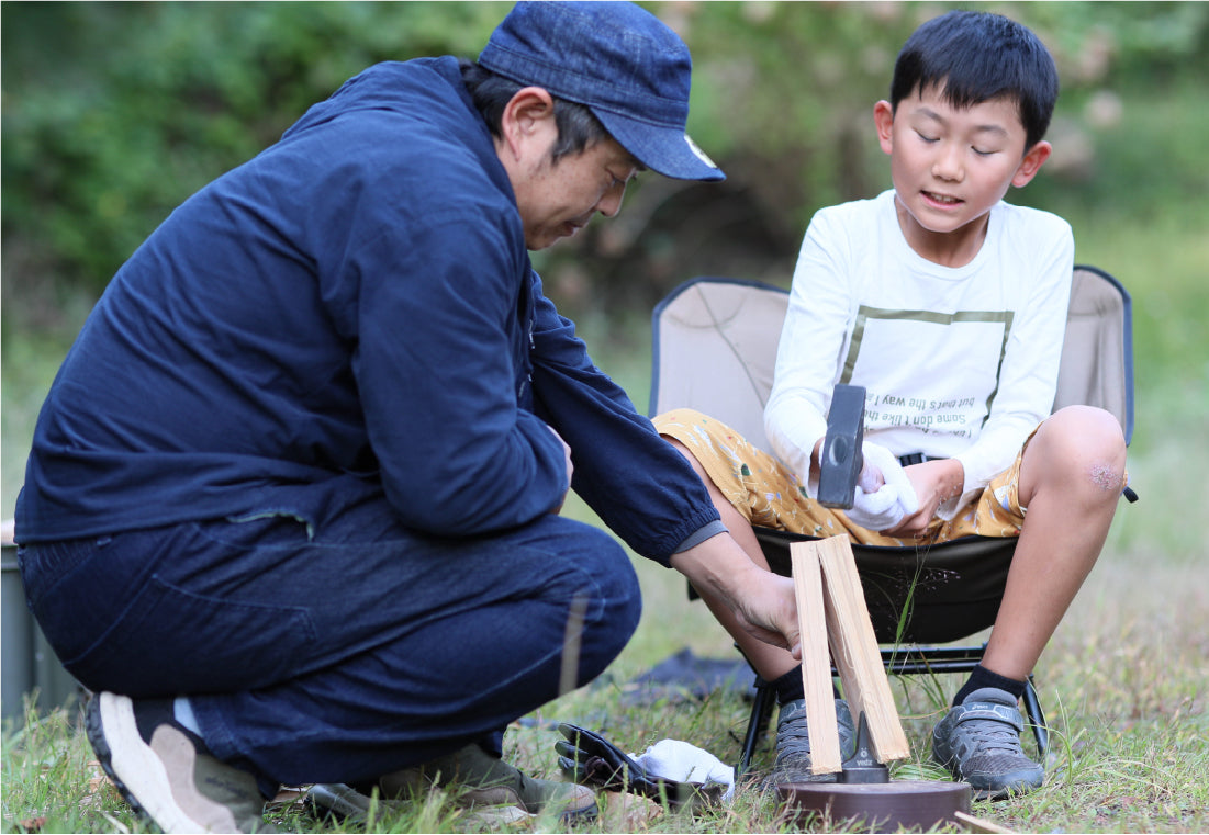 ・お子さんや力のない女性が薪を割る場合、別の方に薪を持ってもらうと、ハンマーに力が入りよく割れます。