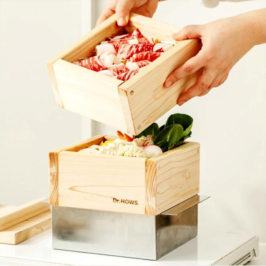 ●天然ヒノキが香る角型(18cm)の蒸し器セットです。